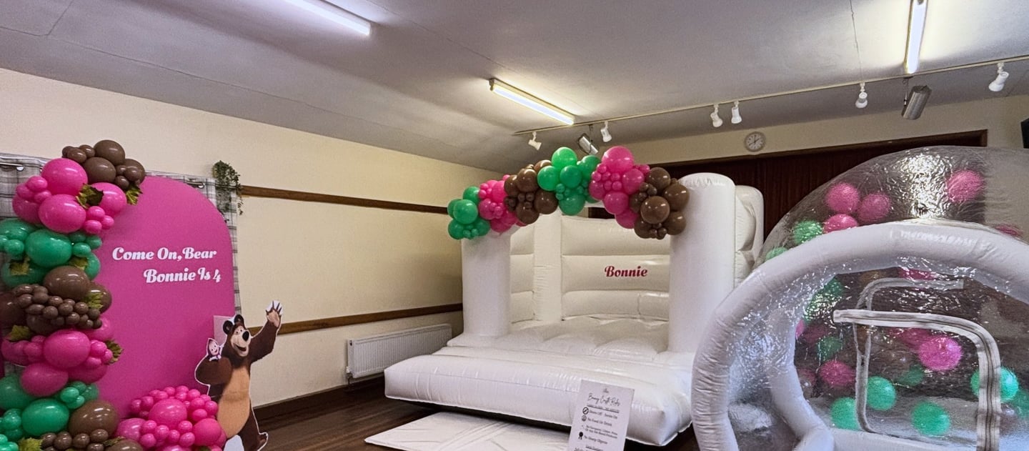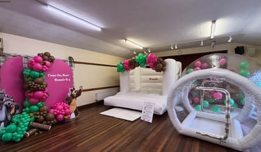 From our white bouncy castles to our Balloon filled Bubble house to our 7ft magical air juggling ball pit