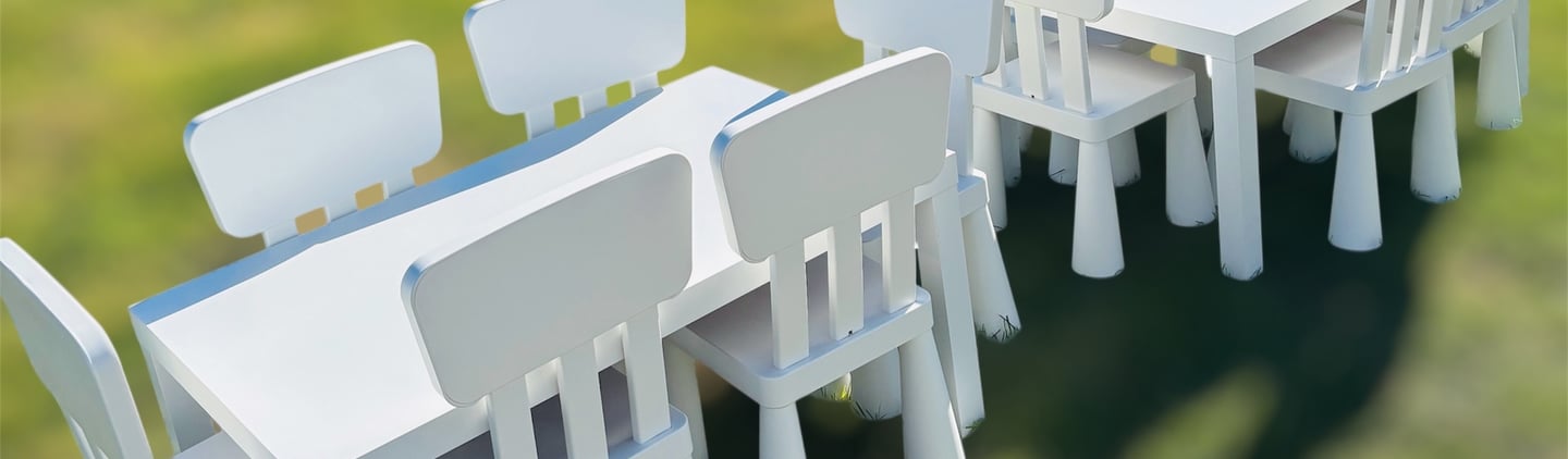 Create the perfect little setting for your next celebration with our brand-new children’s tables and chairs. Designed in a clean, all-white finish, this stylish set blends beautifully with any theme — from birthday parties and baby showers to weddings and family gatherings.